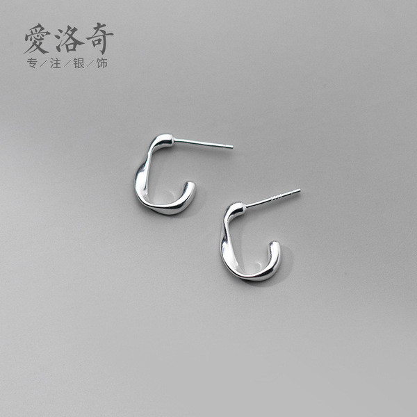 s925 sterling silver irregularC earrings