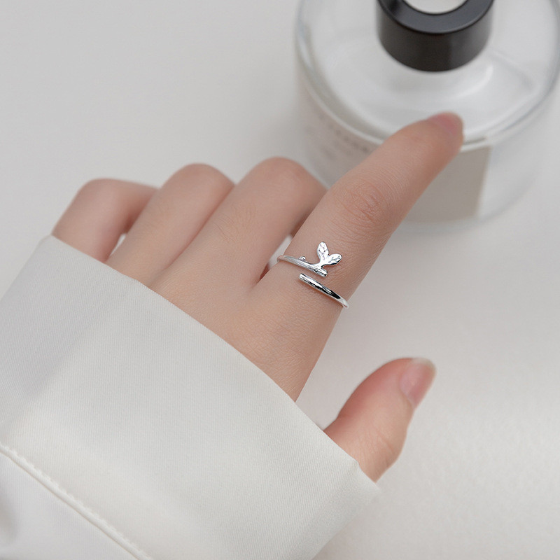 s925 sterling silver chic simple trendy rhinestone sweet adjustable ring