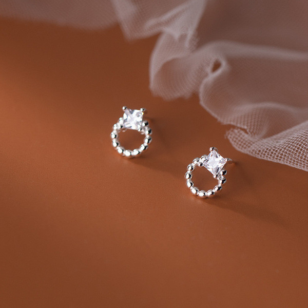 s925 sterling silver simple square tassel weave string short chic earrings