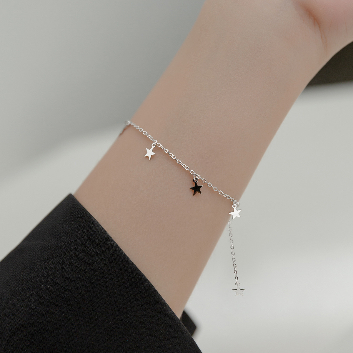 s925 sterling silver charm trendy hollowed star charm bracelet