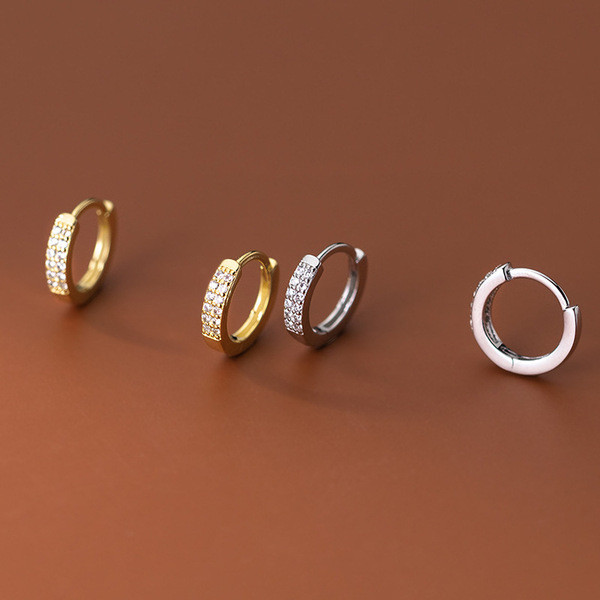 s925 sterling silver chic square geometric short hoop rhinestone earrings