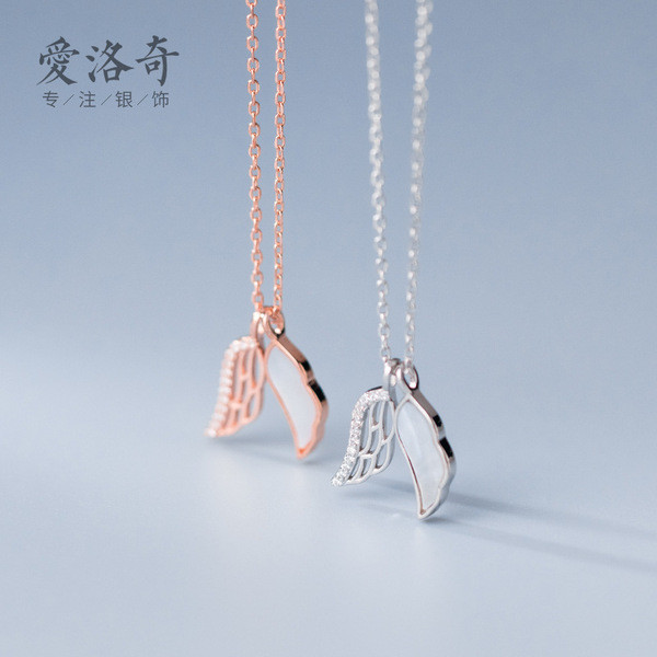 s925 sterling silver simple chic rhinestone feather trendy necklace
