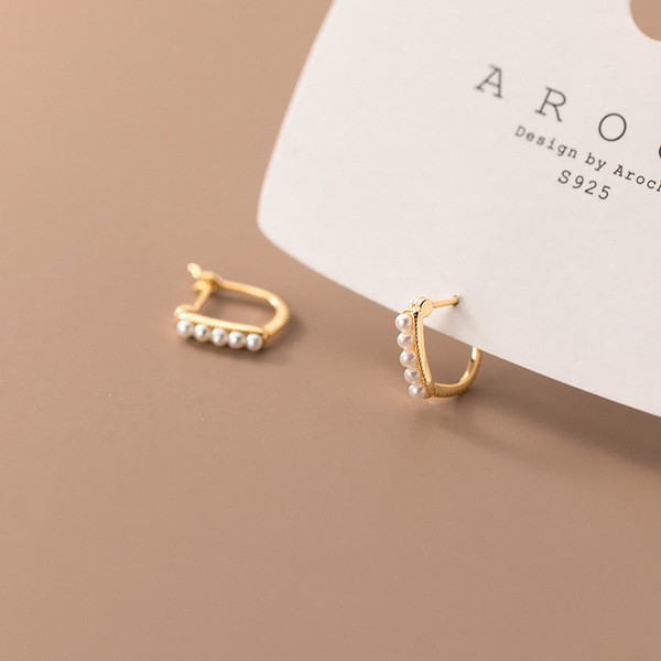 s925 sterling silver simple hollowed geometric pearl earrings