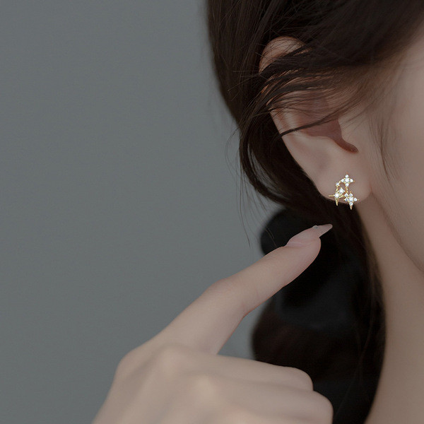 s925 sterling silver square rhinestone simple cute geometric earrings