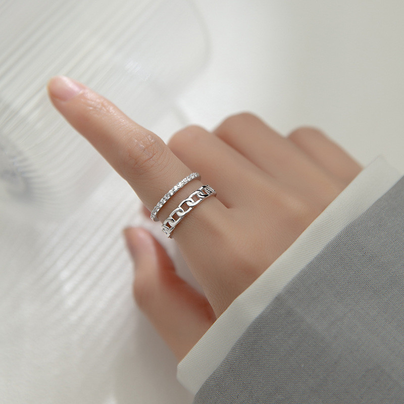s925 sterling silver rhinestone cross adjustable ring