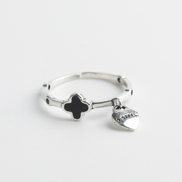 s925 sterling silver fashion adjustable rhinestone heartshape ring